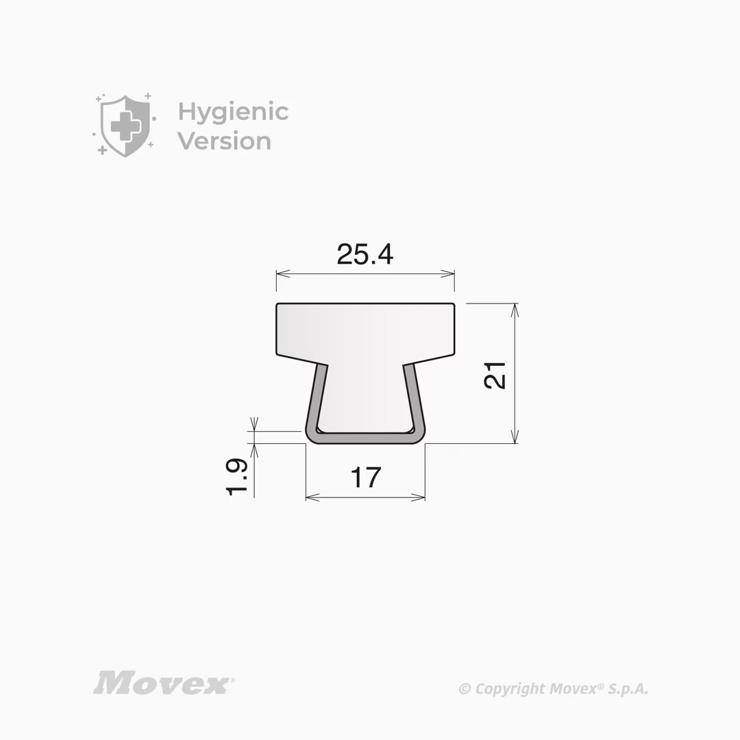 RAIL no. CVR-37, BASE 0.67’’ LARGE, 2-1/4’’ PLAT, UHMW BLANC, SUPPORT EN ACIER INOX. 2mm (Épaisseur 0.074’’ +/-0.03’’)